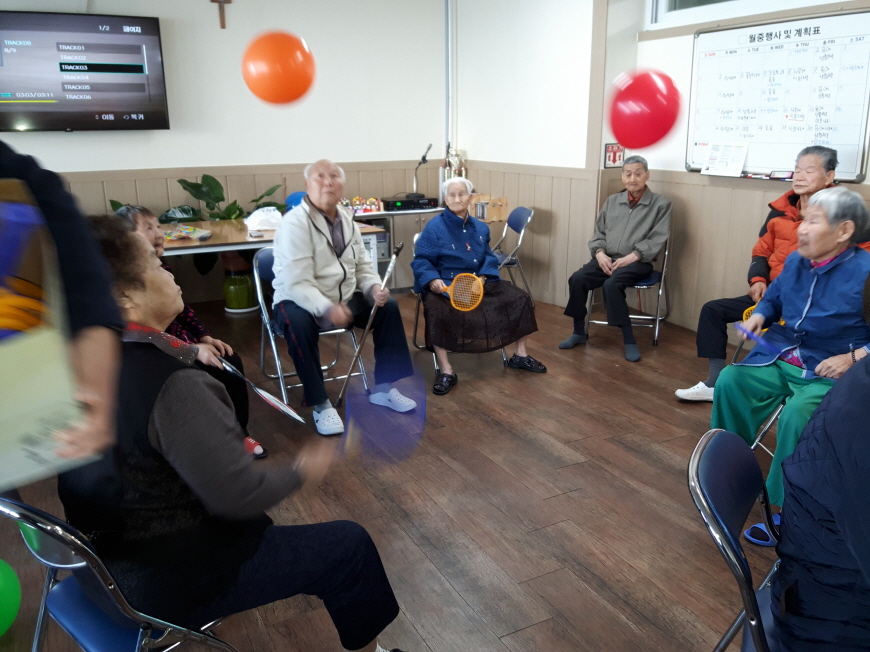 생활체조 시간에 풍선치기 및 공주무르기를 실시함