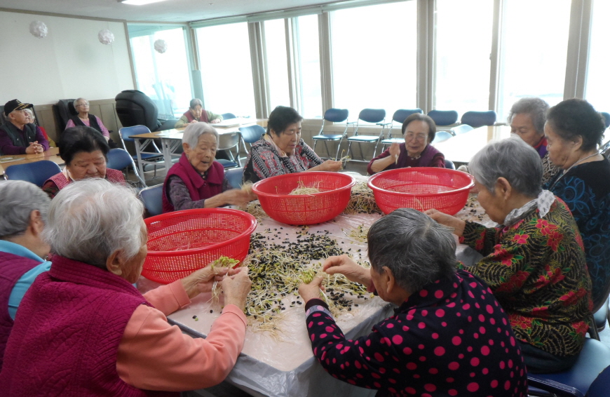 콩을 시루에 앉히는 과정 부터 콩나물을 다듬는