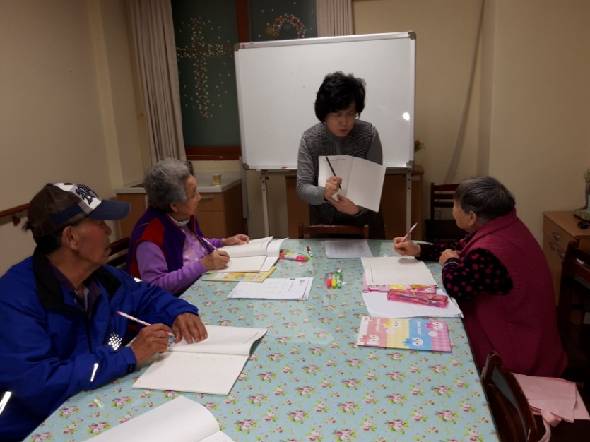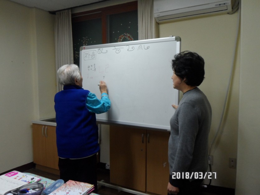 표출하셔, 2018년도 신규사업으로 한글교실을 실시하였습니다.