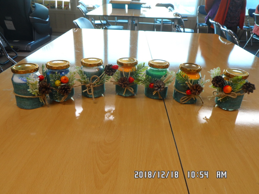미술치료시간에 색모래 및 꾸미기 재료를 이용하여 촛불을 만드셨답니당.