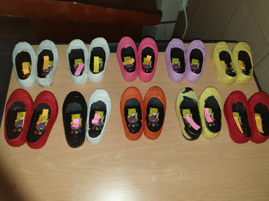 앙증맞은 고무신에 한지를 붙이는 작업을 하였지용~~