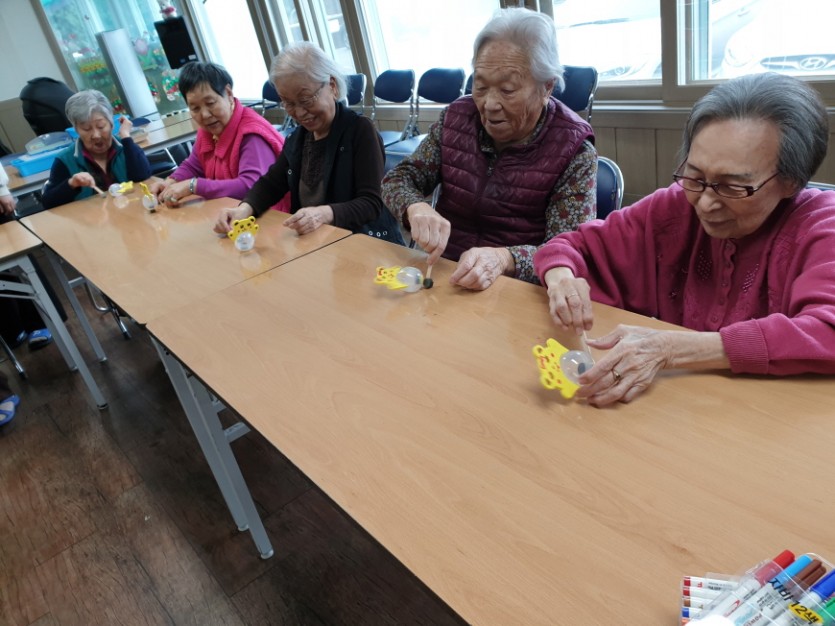 놀이를 하시면서, 신기해하시기도 하고 활짝 웃기도 하시며