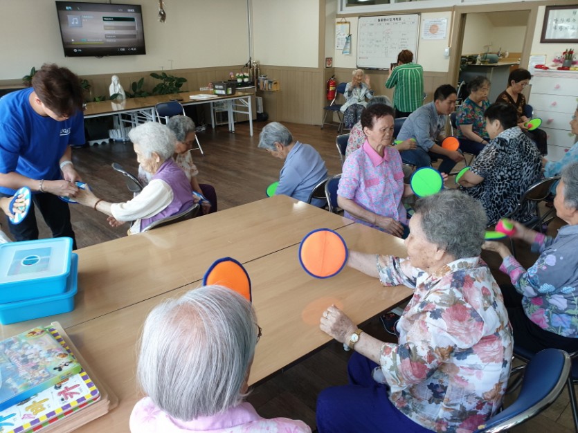 생활체조 시간에 체조도 하고 짝꿍과 캣치볼을 던지며 아침 운동을 하셨답니다.