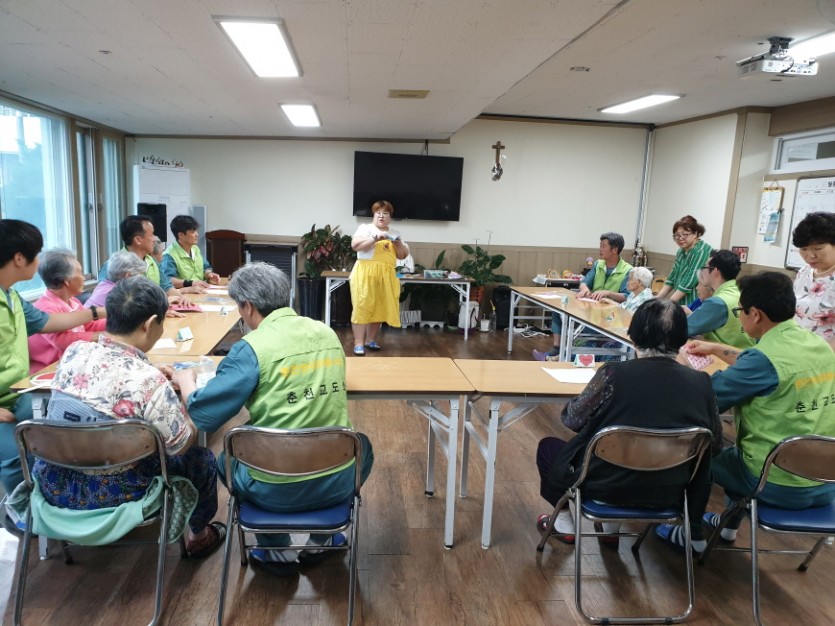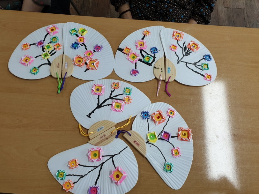 6월 종이 접기 시간에 어르신이 부채 꾸미기를~~