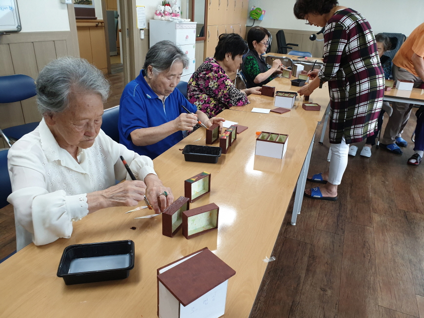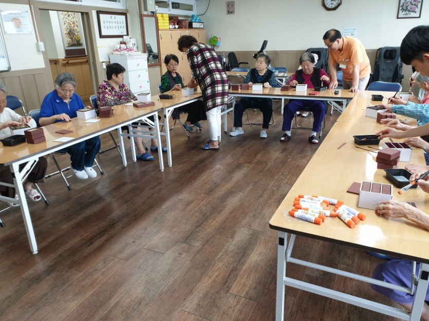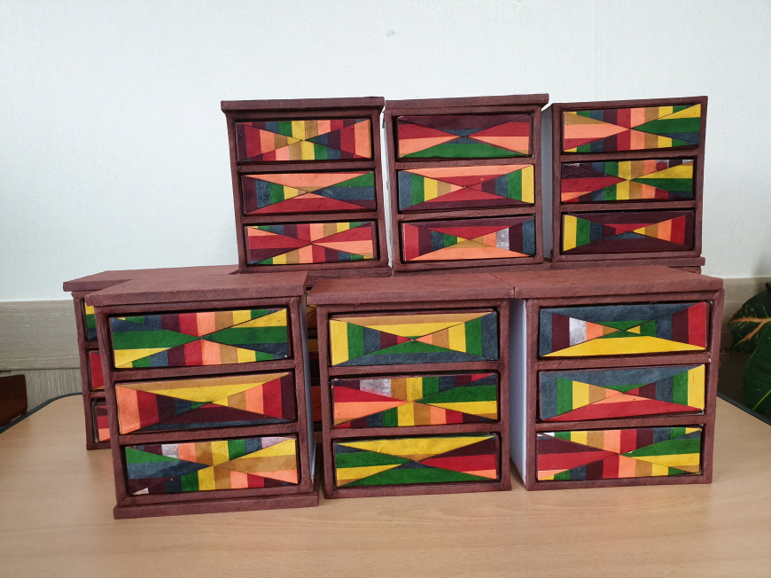 개학하여 첫 한지공예 수업으로 미니서랍장을 만드셨답니다.