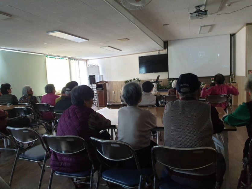 모두 모여 간식을드시면서 신과 함께라는 영화를 관람하였습니다.