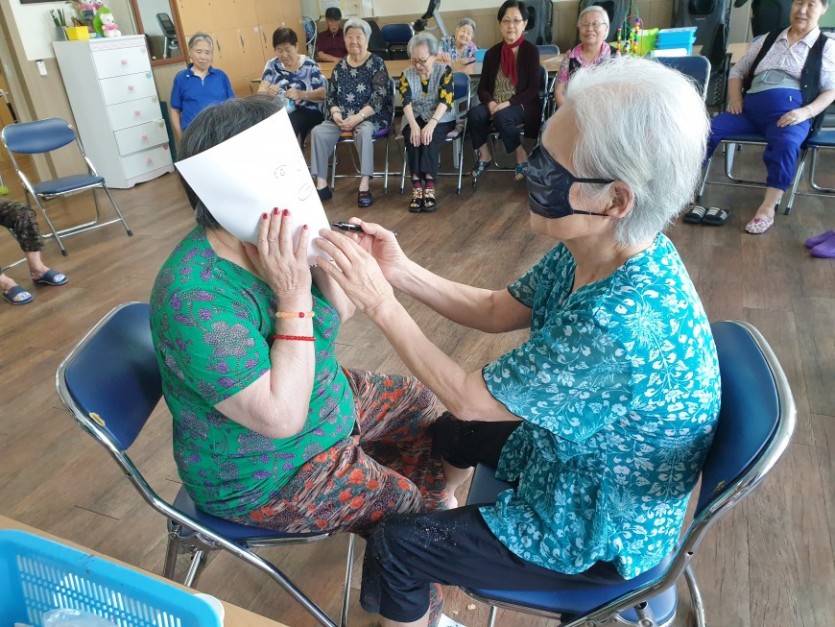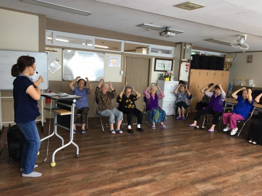 레크리에이션 시간에 게임 및 신나는 노래에 맞추어 율동을 하며