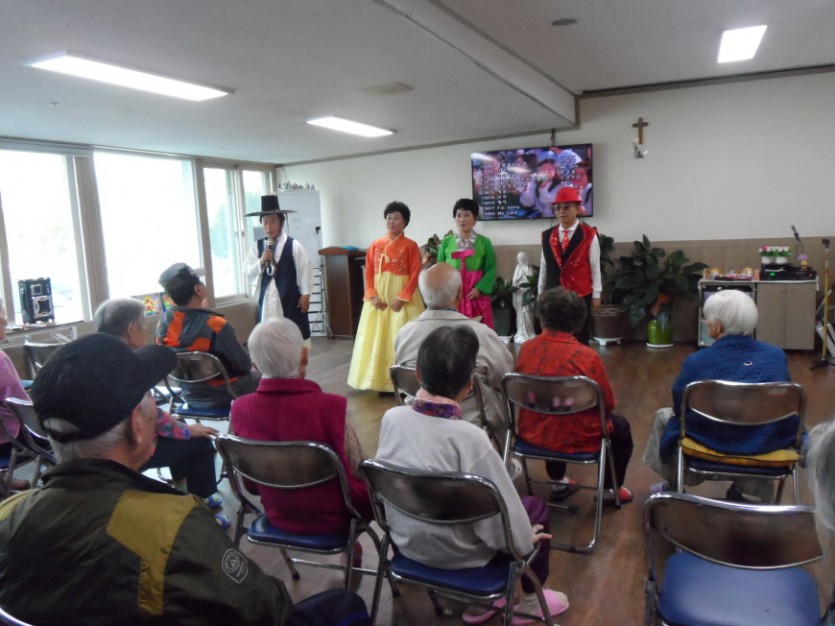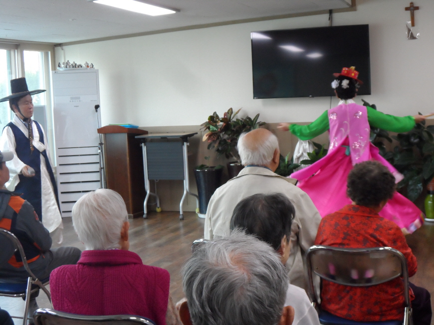 스마일 봉사단을 초청하여 노래, 춤, 마술등 다양한 공연을 보여주셨답니다.